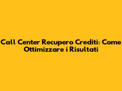 Ottimizzazione dei Risultati del Call Center di Recupero Crediti