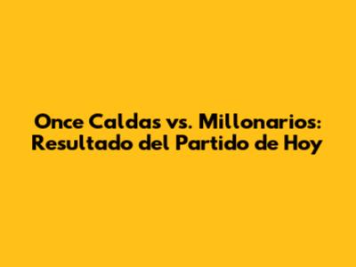 Once Caldas Vs. Millonarios: Resultado Del Partido De Hoy